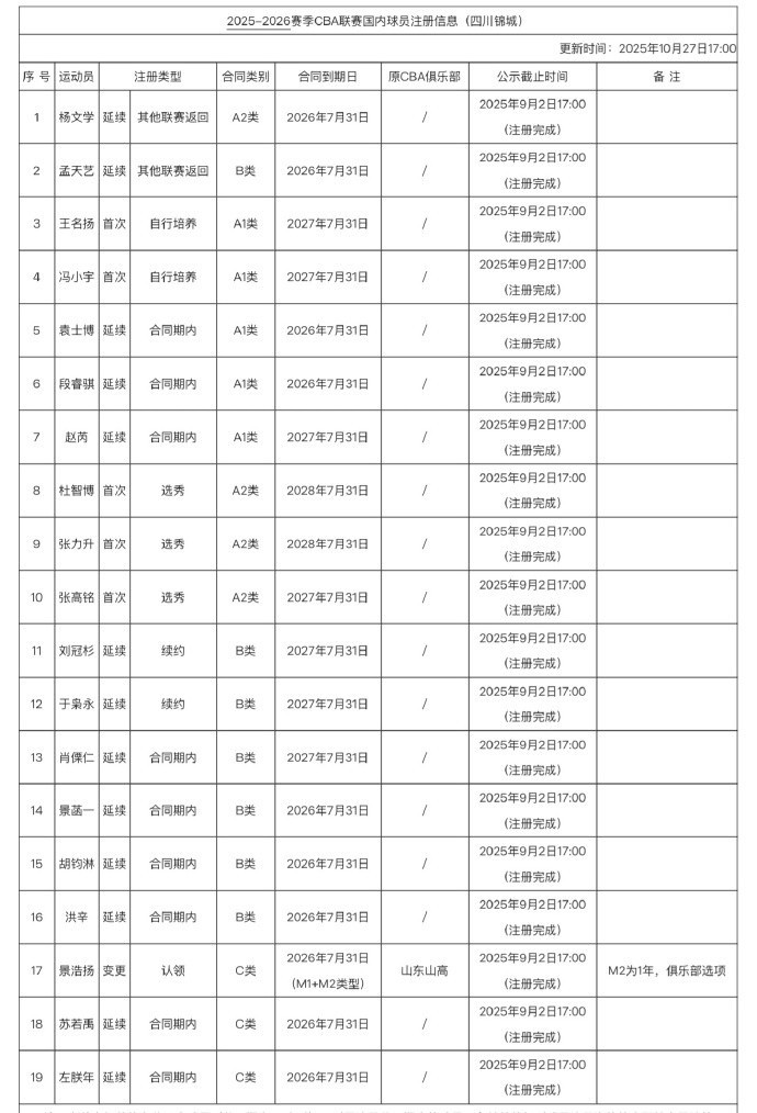 之后@球圈赵探长还在社媒上盘点了四川男篮的情况:“四川男篮目前的‘球员资产’:本土球员19名、优先续约权外援1名。”