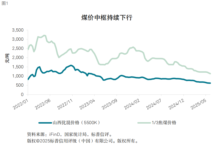 煤炭行业自2021年开启景气周期,距今已四年有余。进入2025年以来,受供需格局趋于宽松等因素的影响,煤价快速回落,市场煤价已向下突破年度长协价,5,500大卡煤价降至700元/吨以下,较前期景气周期高点价格显著下降。面对新能源发电对火电的替代效应逐渐增强,钢铁、建材等下游需求动能不足等因素,煤炭需求是否已缺乏支撑?行业供给结构有哪些变化?煤价下降,煤炭企业财务压力如何?标普信评将在本文中对上述问题进行分析与探究。