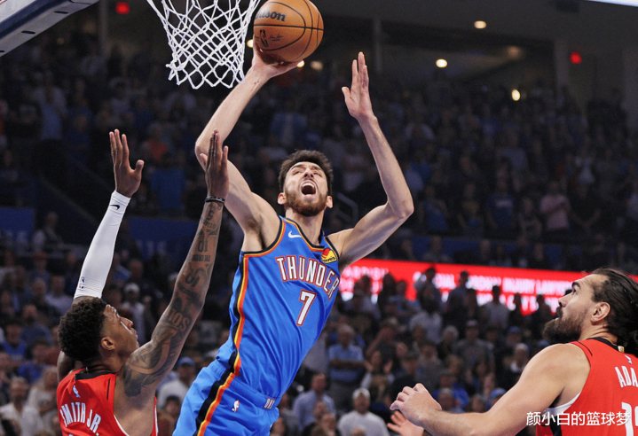 末节开场哈腾为切特传了一个空接助攻暴扣完成20+,霍姆格伦篮下又中一个关键抛投,SGA中投反超后霍姆格伦对小贾犯规,戴姆波特挑战但失败了。但SGA还在命中,他在终场前2秒完成了绝平,申京绝杀不中。