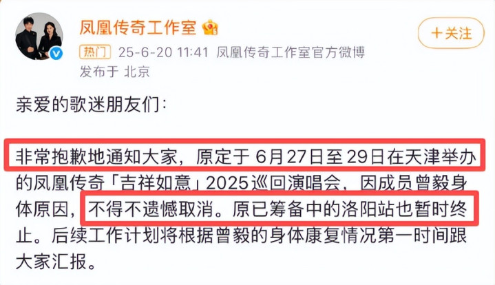 凤凰传奇工作室|曾毅因身体原因暂停工作